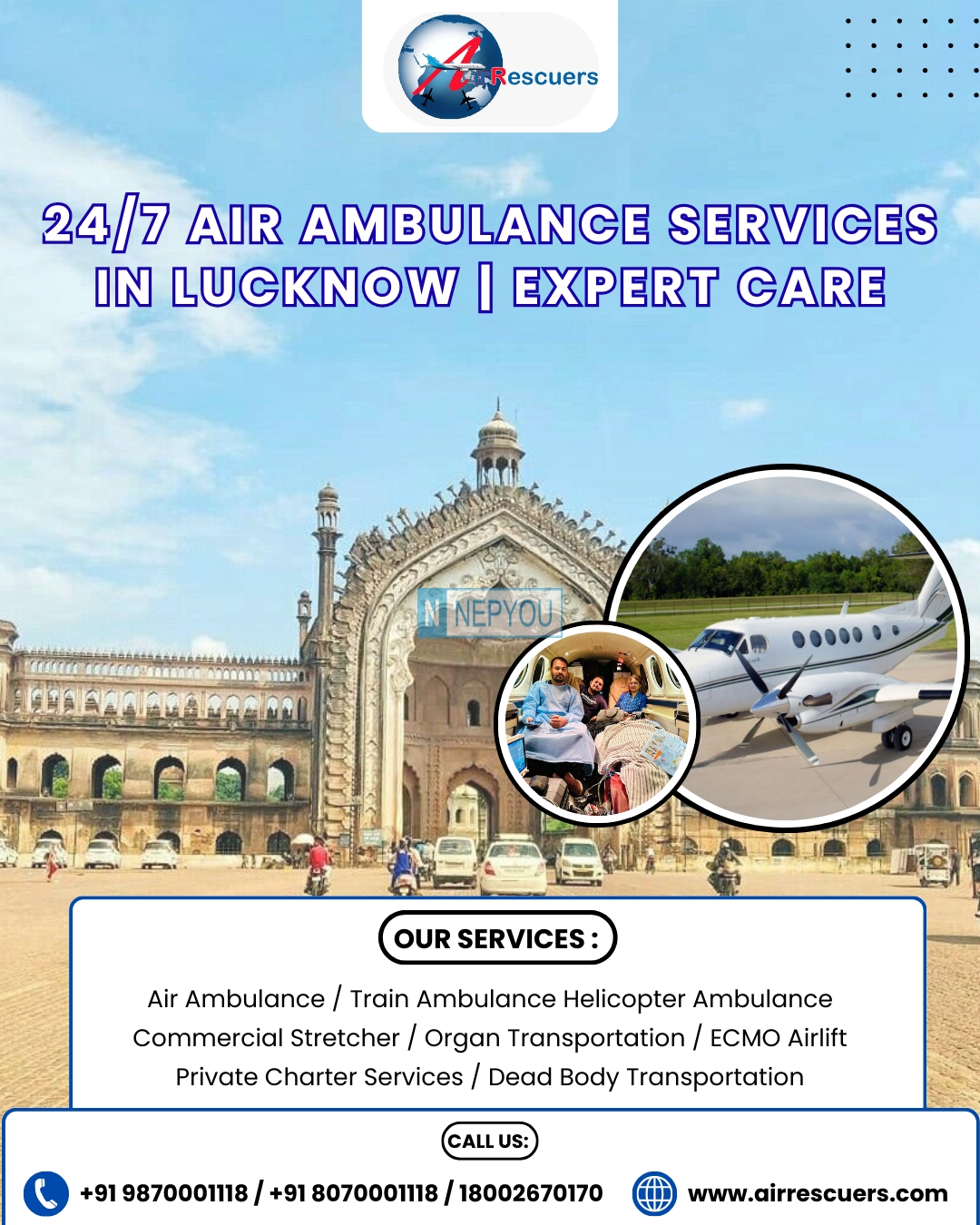 Providing 24/7 emergency air ambulance services in Lucknow, Air Rescuers guarantees quick response, professional care, and safe transfer for critically ill patients.